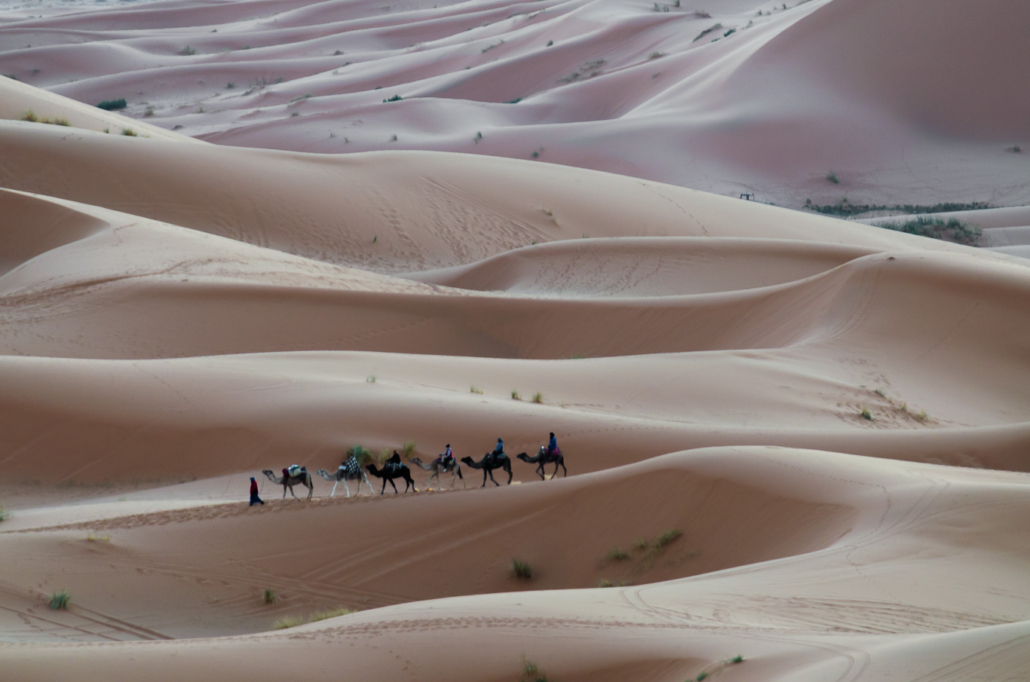 A road trip in Morocco. From Fez, travelling south to Midelt, Errachidia, Merzouga, then west to Nkob, Taourirt, Aït Benhaddou, and the coast at Sidi Kaouki, then back inland to Marrakesh. A photogenic country.